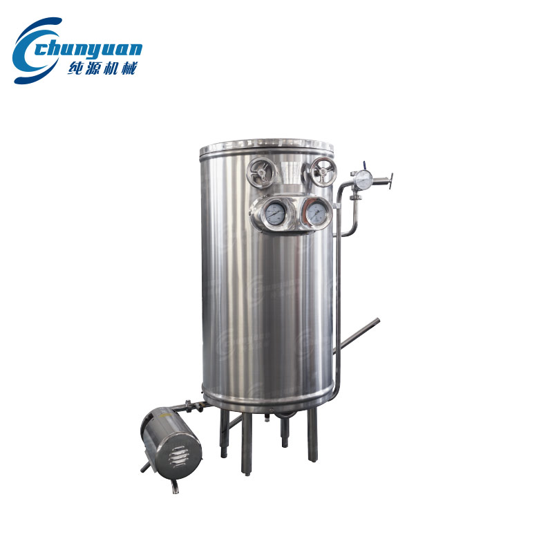 超高溫瞬時(shí)滅菌器一般物料由離心泵泵入滅菌機(jī)中冷熱料熱交換裝置中而得到預(yù)熱,再經(jīng)過(guò)充滿高壓的高溫桶,物料被迅速加熱到殺菌溫度并在此前后保持約6秒,其中的微生物及酶類很快被殺滅。物料出高溫桶后通過(guò)與冷卻水的熱交換獲得冷卻,一般溫度低于65℃。如果下道工序需要提高溫度則可通過(guò)調(diào)節(jié)角式截止閥或循環(huán)等途徑達(dá)到要求,出料溫度85℃,反之則通過(guò)接入冷卻水來(lái)降低出料溫度。出料通過(guò)節(jié)流閥控制,此閥能使在維持一定壓力下物料的沸點(diǎn)高于高溫度。正常生產(chǎn)時(shí)調(diào)節(jié)此閥,由泵的推動(dòng)力克服彈簧壓力而產(chǎn)生背壓控制流量,在清洗滅菌機(jī)時(shí)則應(yīng)全部開(kāi)啟。循環(huán)貯槽可用來(lái)配制酸堿溶液,對(duì)盤(pán)管內(nèi)壁積垢進(jìn)行有效清洗。由于同時(shí)采用不銹鋼三通旋塞,流量可以得到適當(dāng)調(diào)節(jié)。
