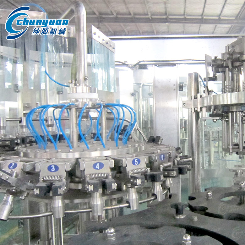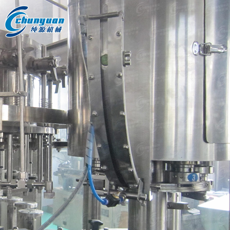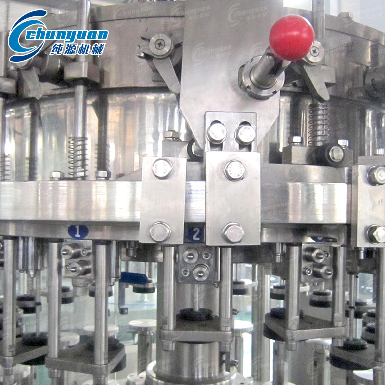 組內(nèi)一次性完成洗瓶、灌裝、封蓋三道工序,其瓶子損壞小、傳動準確平穩(wěn)、瓶型更換快捷。特殊規(guī)劃的沖瓶機瓶夾結(jié)實耐用,不接觸瓶口螺紋部位,防止瓶口的二次污染。與液體接觸的零部件均采用優(yōu)質(zhì)不銹鋼材料或食品級工程塑料,相符合國家食品衛(wèi)生標準。
